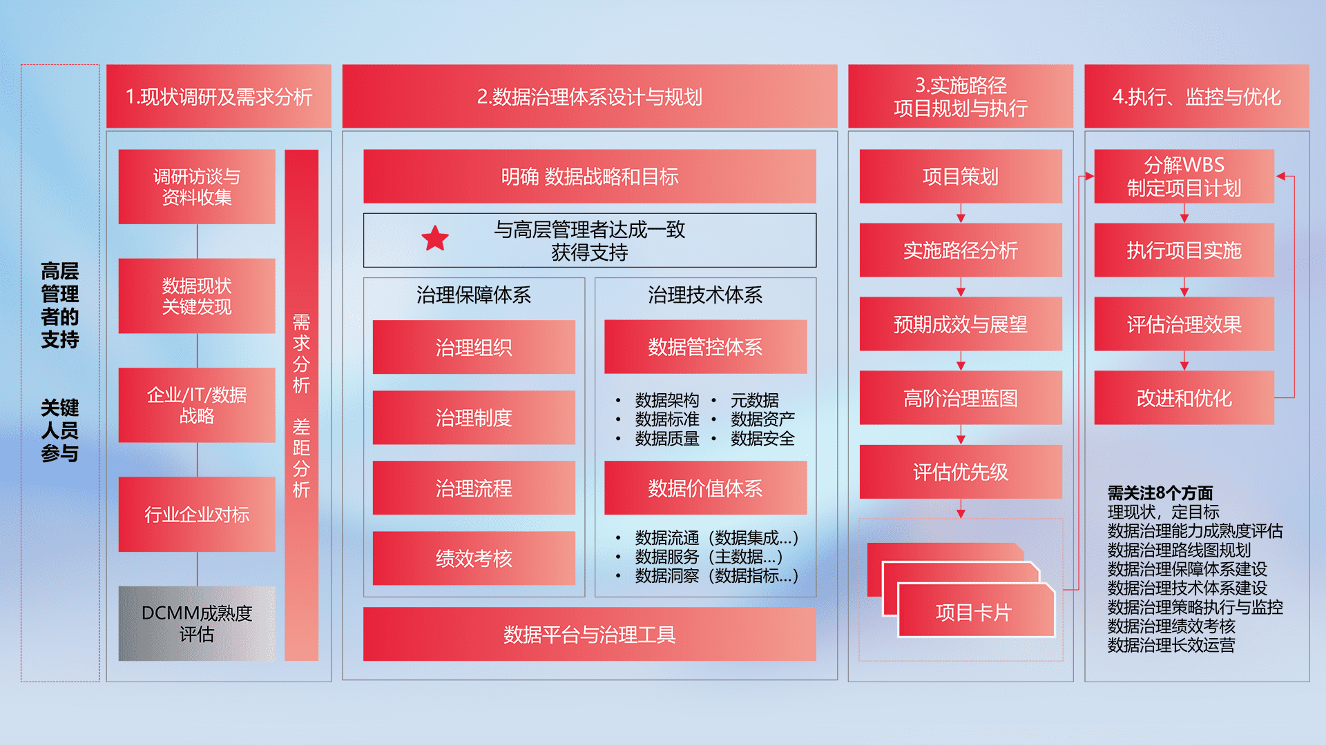 制定并执行统一的数据标准,,,,规范数据定义和格式,,,消除冗余和不一致性,,实现跨部门和跨系统的数据一致性,,为企业提供标准化的数据基础。。。